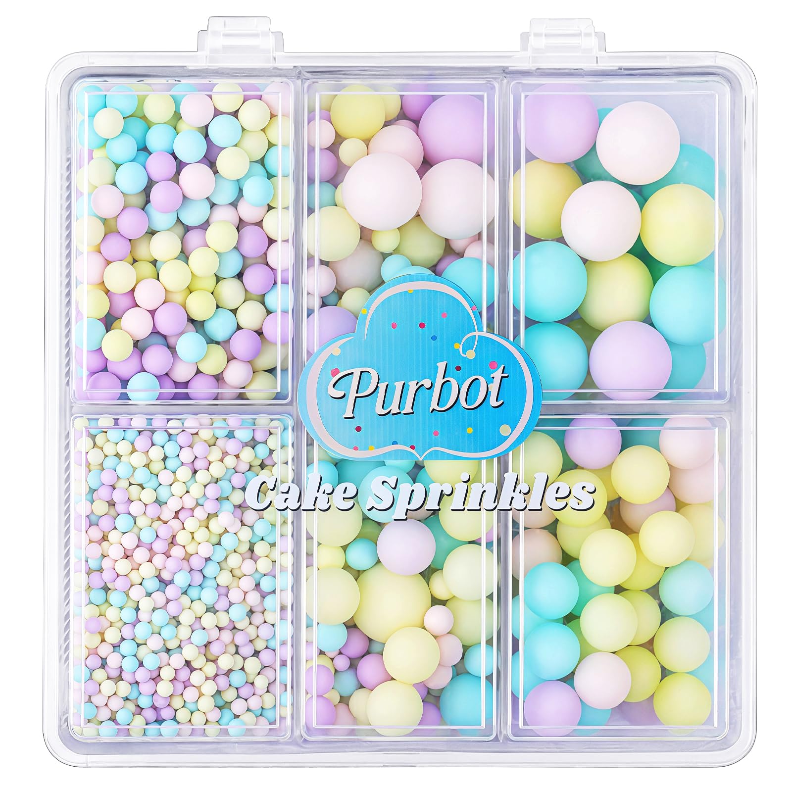 Soft pastel pearl sprinkles for cake decorating with multiple sizes. Perfect for cupcakes, cookies, cakes, and baby shower desserts. Elegant, colorful, and easy to use.
